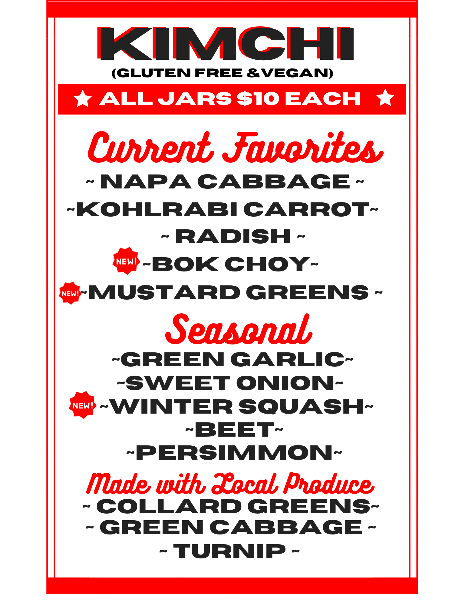 Subject to seasonal change and availability